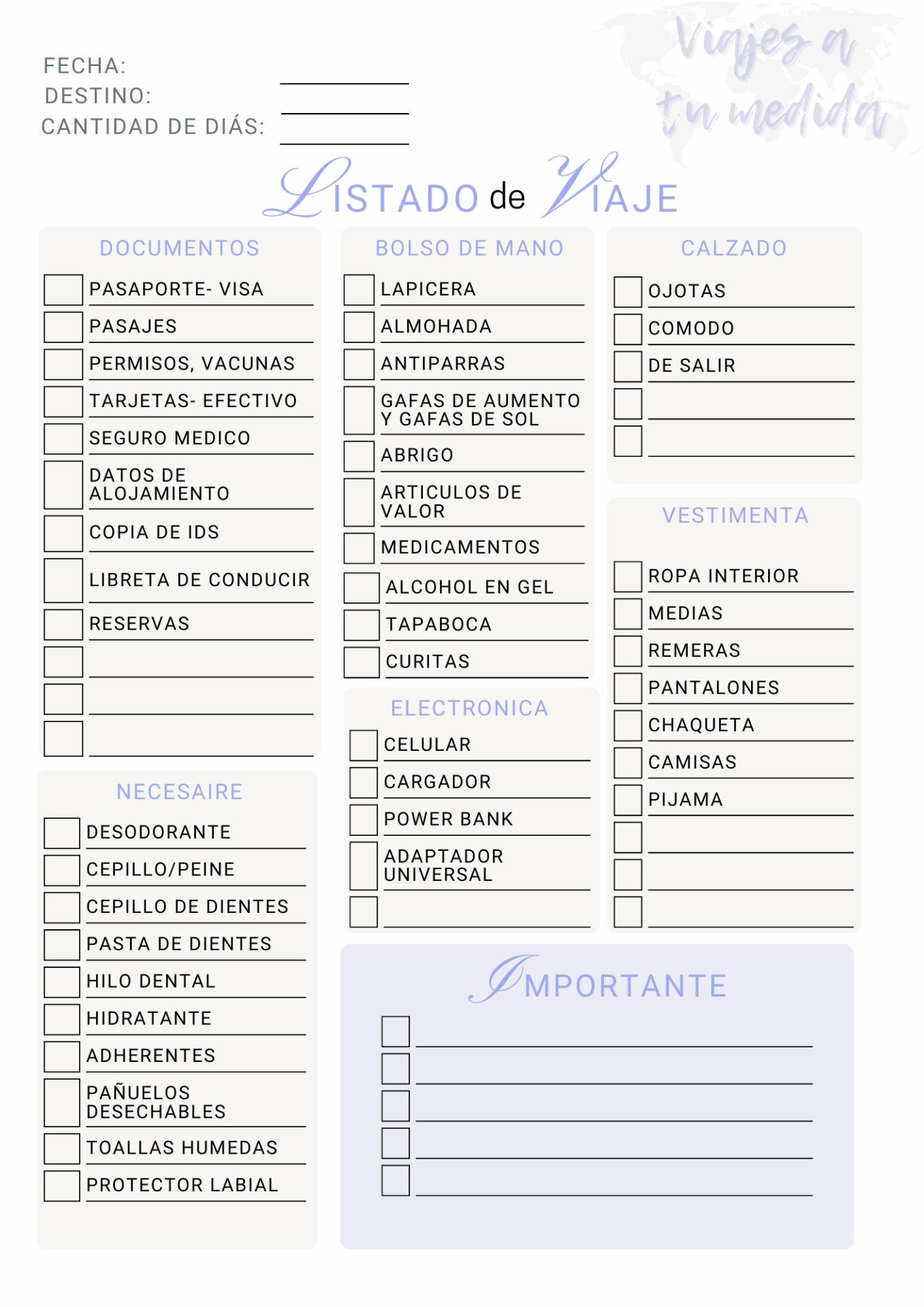 Solicitá tu lista GRATIS por email a viajes.a.tumedida@hotmail.com